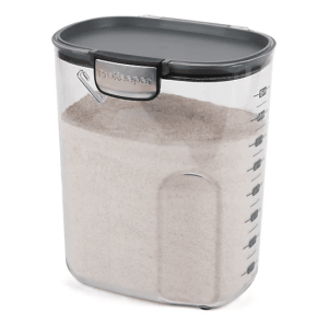 ظرف بالا برای نگهداری آرد مناسب است ، جنس این ظروف از پلاستیک فشرده است که گاهی درجه بندی شده ان و حجم را نشون میدن و گاهی بدون درجه ، که در هر صورت چون درهای محکمی دارن برا ی نگهداری آرد مناسب هستن که هوا و رطوبت نگیرن.